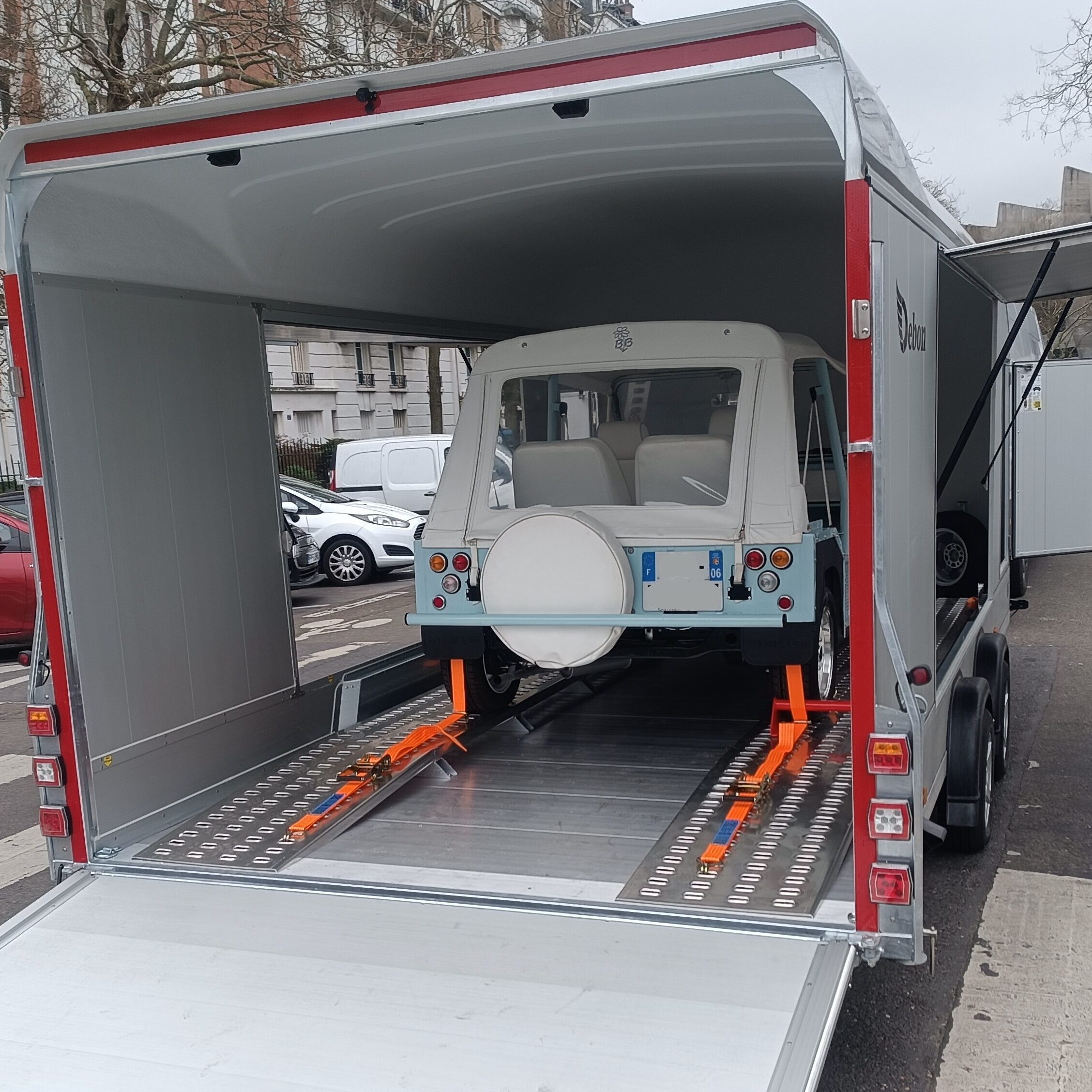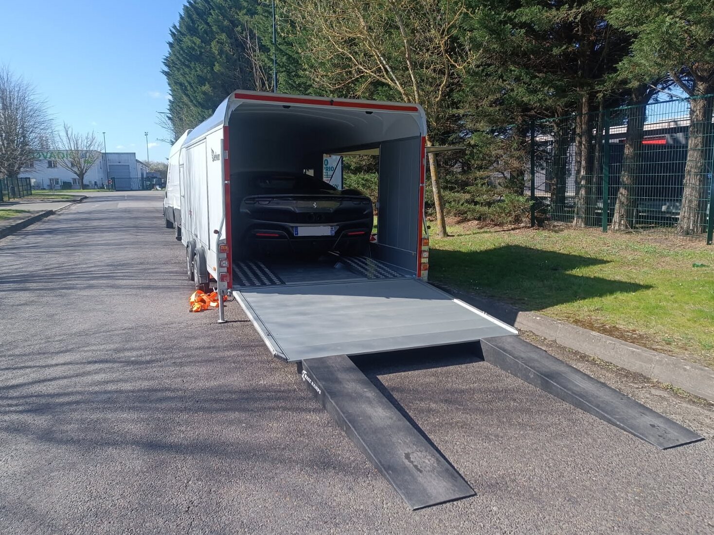Cette remorque est la solution idéale pour le transport de véhicules de prestige, de collection ou sensibles (Voitures de luxe, voitures de