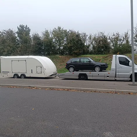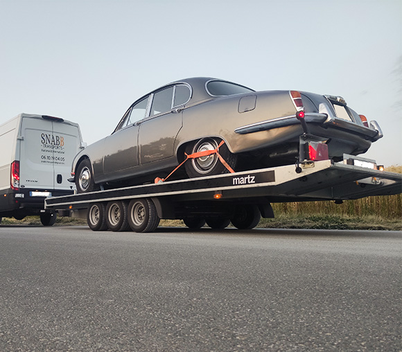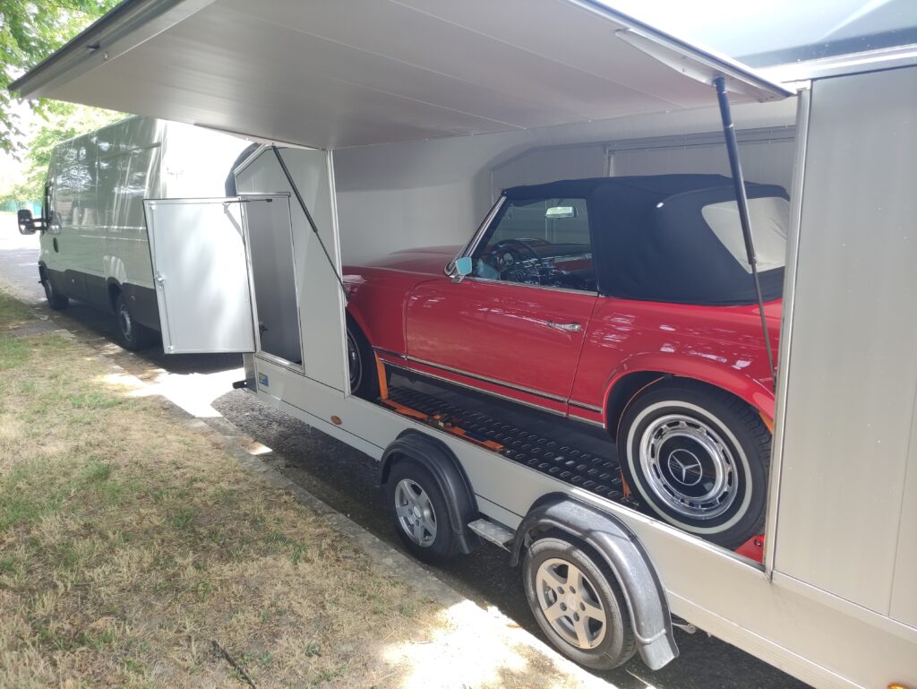 Pour les véhicules qui exigent une attention particulière, nous mettons à votre disposition une remorque porte-voiture entièrement fermée.