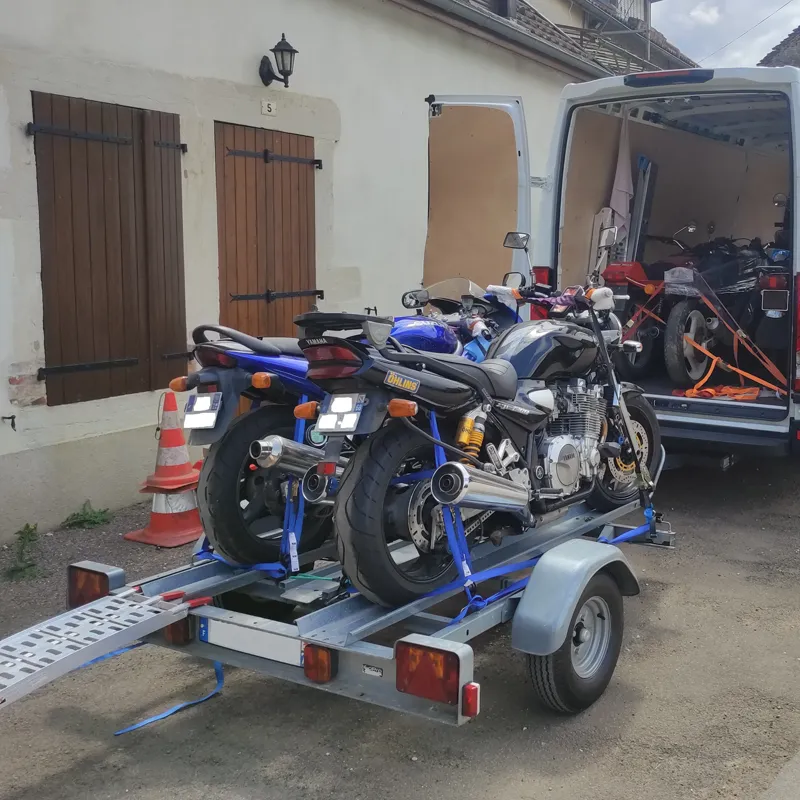 Pour le transport de motos, scooters ou quads, nous utilisons une remorque